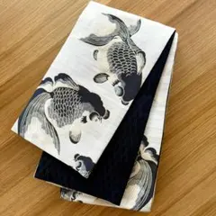 リバーシブル半幅帯 綿100% 個性的 両面 アフリカ柄 アフリカ布 黄土 紺