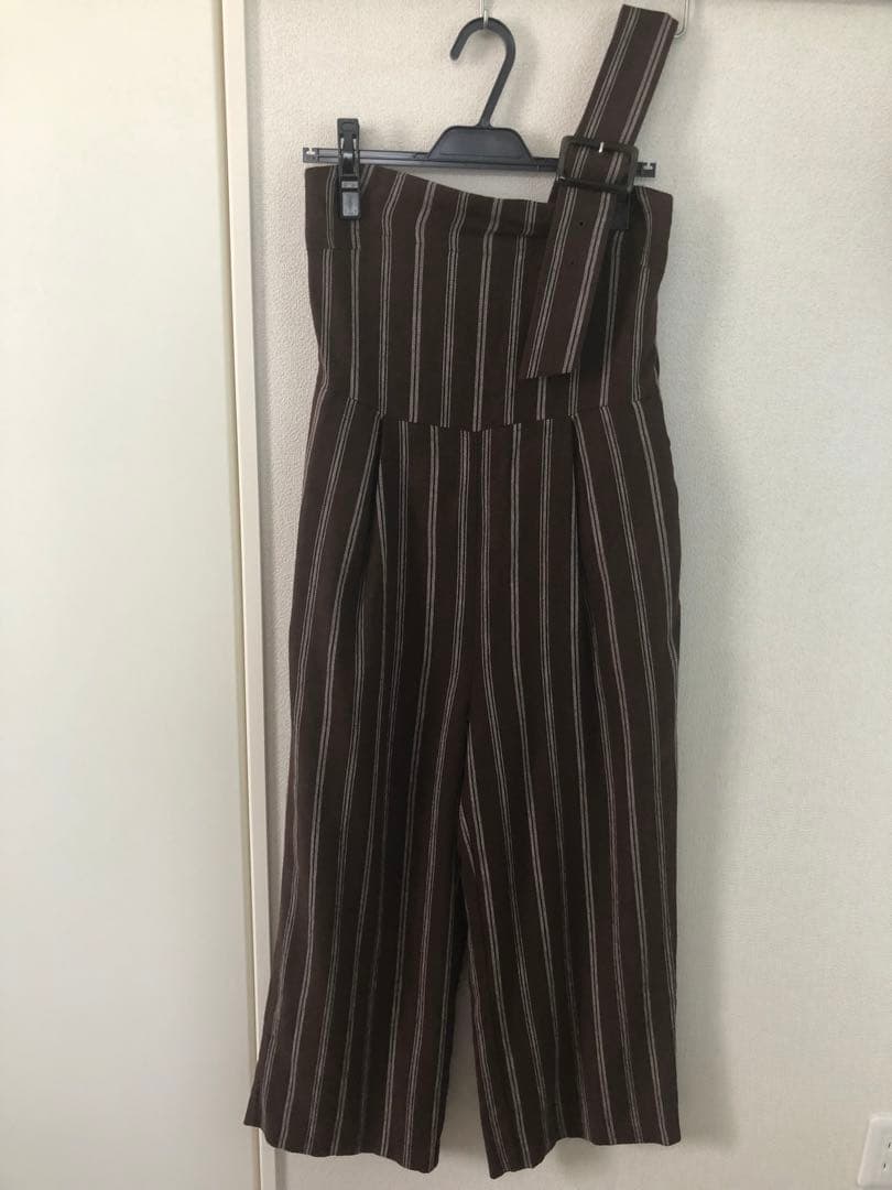 リネンブレンドサロペット・ストライプ!ワンショルダー!ストライプサロペット