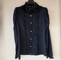 黒のフリルとレース付きのブラウスです。