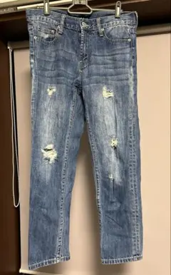 ダメージ加工のブルースキニージーンズ。