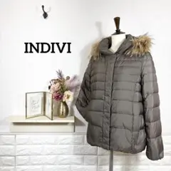 INDIVI ベルテッドダウンジャケット サイズ40 フード付き グレージュ