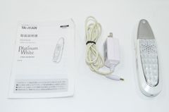 YA-MAN製のピンク色マッサージ器、取扱説明書とACアダプター付き。