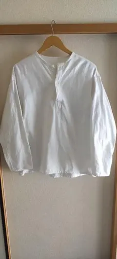 シンプルなホワイトの長袖シャツ、ボタン付きデザイン