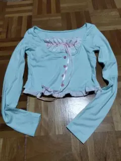 葉柄デザインのネイビーとグリーンの長袖トップス