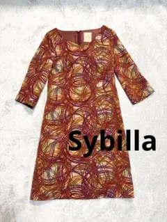 シビラのリボン付き花柄総刺繍フレアワンピースです。アンダードレス付き。