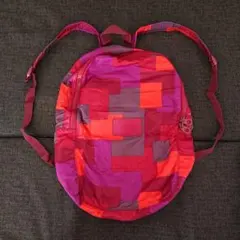 キルティングデザインのブラックリュック、ゴールドジッパー付き。