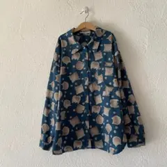 ∵point:アートなブルーローズデザインがお洒落なヴィンテージの柄シャツです! 上質なコットンボディで個性が出ます.*・゜シルバーのボタンも渋くて綺麗です⟡.·