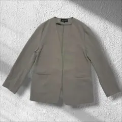 インディヴィ ノーカラー Vネックツイードジャケット フリンジ ママコーデ 羽織