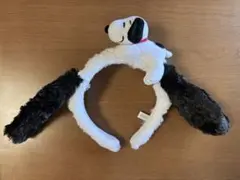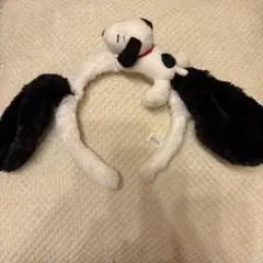 黒と白のファーで作られたウサギの耳カチューシャ、パウプリント付きで可愛いデザイン。