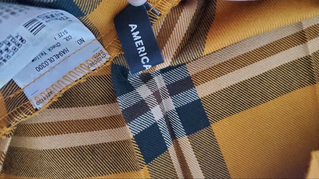2つ折りにしてハンガーにかけていたので、少しかたがついています。