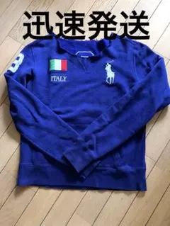 ポロラルフローレン 刺繍ロゴ アップリケ スウェット 濃紺 XL クロップド丈
