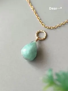 天然石の緑色ペンダント、ユニークな形状とゴールドフック付き。