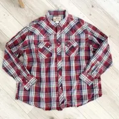 RUSTLER 長袖ウエスタンシャツ ネイビー/ホワイトチェック XL