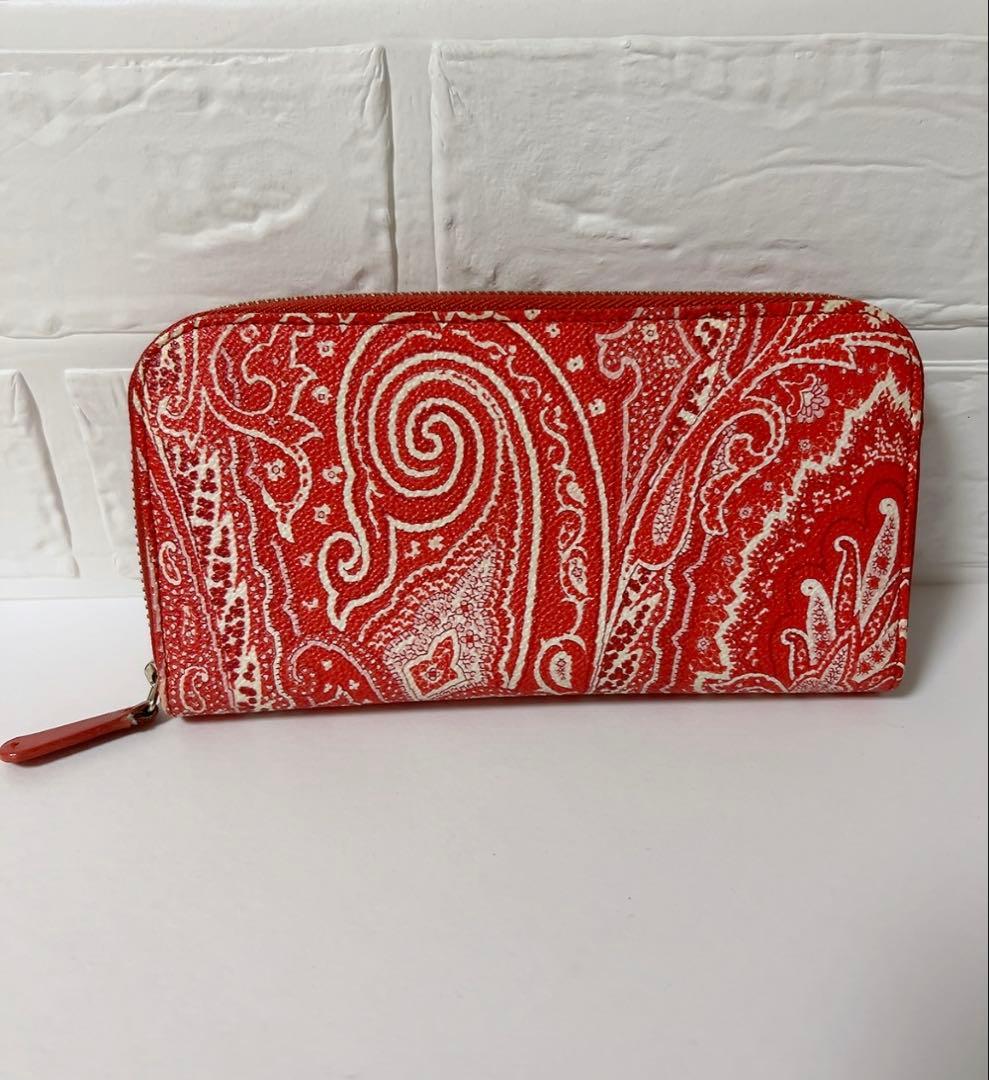 エトロ ETRO 長財布 赤 ラウンドファスナー