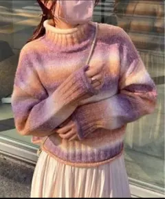 NICE CLAUPグレー タートルネック セーター
