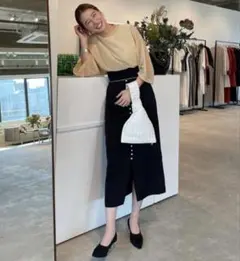 (L02641)CLANE THIN LINE RIB SKIRT 黒 1