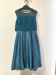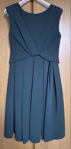 ノースリーブ ダークグリーンAラインフレアドレス