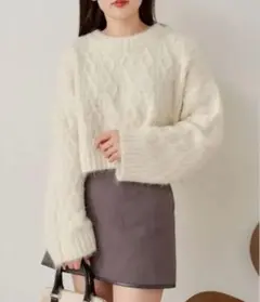 Chico パール付き2WAYショート丈ニット ピンク Fサイズ