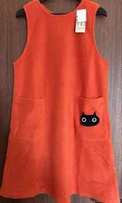 猫の刺繍が特徴的なオレンジ色のエプロン
