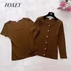 FOXEY 38 ベージュ ダブルジップアップ カーディガン 長袖 フォクシー