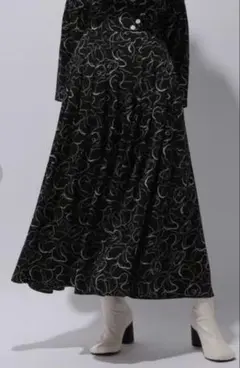 ブラック生地にとホワイト生地のチェーン柄デザインがあしらわれたフレアスカート、フリーサイズです。
