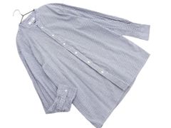 青と白のストライプデザインのVネックシャツ、レースアップバック付きでスタイリッシュ。