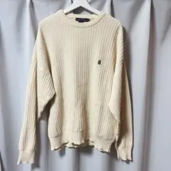 アイボリーのリブ編みニットセーター、刺繍ロゴ付き。