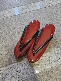 【超美品】着物草履 黒×赤エンジ系 レトロ アンティーク M(約23cm)