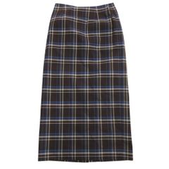 爽やかな配色のブロックチェック柄ロングスカート。