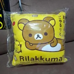 リラックマのキャラクターが描かれたカラフルなクッション。