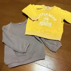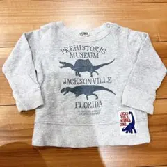 グレーと水色の星柄の長袖トレーナー、ポケット付きで可愛いデザイン。