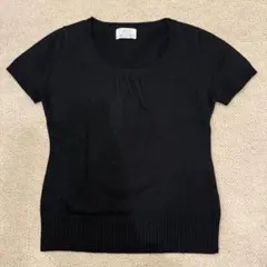 ブラックとホワイトに、光るラメ糸が編まれたニット生地にパールボタンがついたカーディガン。