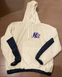 使用感あり、毛羽立ちあり、ピリングあり、やや色褪せあり、フード紐欠損。リブの伸びヘタりややあり。