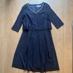 七分袖総レースミモレ丈ワンピース・ドレス ブルー