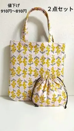 最終値下げ ミモザ柄 トートバッグ 薄緑 お散歩 お出かけ