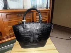 クロコダイル風 ブラック ハンドバッグ