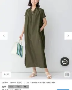 LA6698 23区 花柄 半袖ロングワンピース ポリエステル ベージュ 46