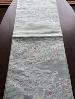 アンティーク 赤と白とシルバー 花柄 袋帯
