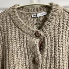 ダークグレーのクロップドカーディガン、6つのボタン付きでスタイリッシュなデザイン。
