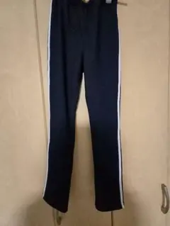 スリムフィットのブラウンロングパンツ、ゴムウエストで快適な着用感。