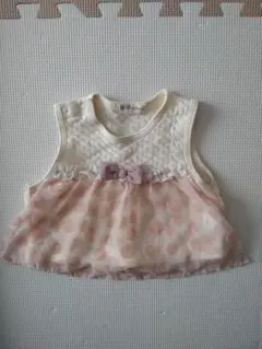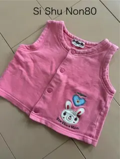 柔らかいフリース素材のピンクのベビーベスト、ボタンとポケット付きで可愛いデザイン。