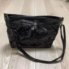 美品 スパンコール ショルダー バッグ チェーン付き シルバー ぱっちり目