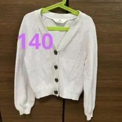 マスタード色のVネックニットカーディガン、ボタン付き、サイズ130cmくらい