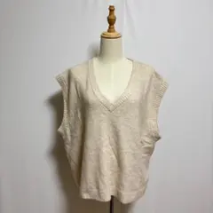 【タグ付き新品未使用】H&M ニットベスト Vネック アイボリー ホワイト M