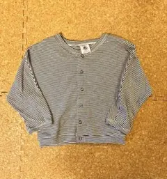柔らかいコットン素材のグレーのカーディガン、18mサイズ。