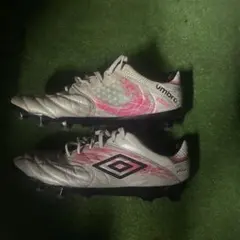 未使用のUmbro SXサッカーシューズ、赤と白のデザインでスパイクソール。