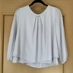 GRLのホワイトのプリーツデザインの長袖シャツ、フレアスリーブ付きでクロップド丈。