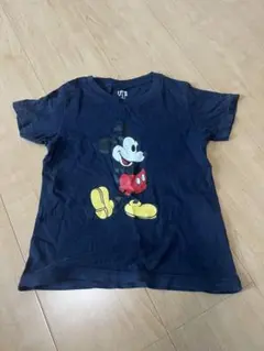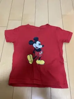 ミッキーマウスのプリントが特徴のダークグリーンTシャツ。