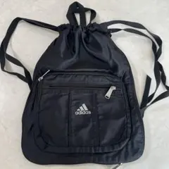 adidasのレッドとブラックのナップザック、ジッパーポケット付きで実用的。