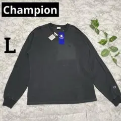 Champion LL グレー Vネック ワッフル長袖Tシャツ